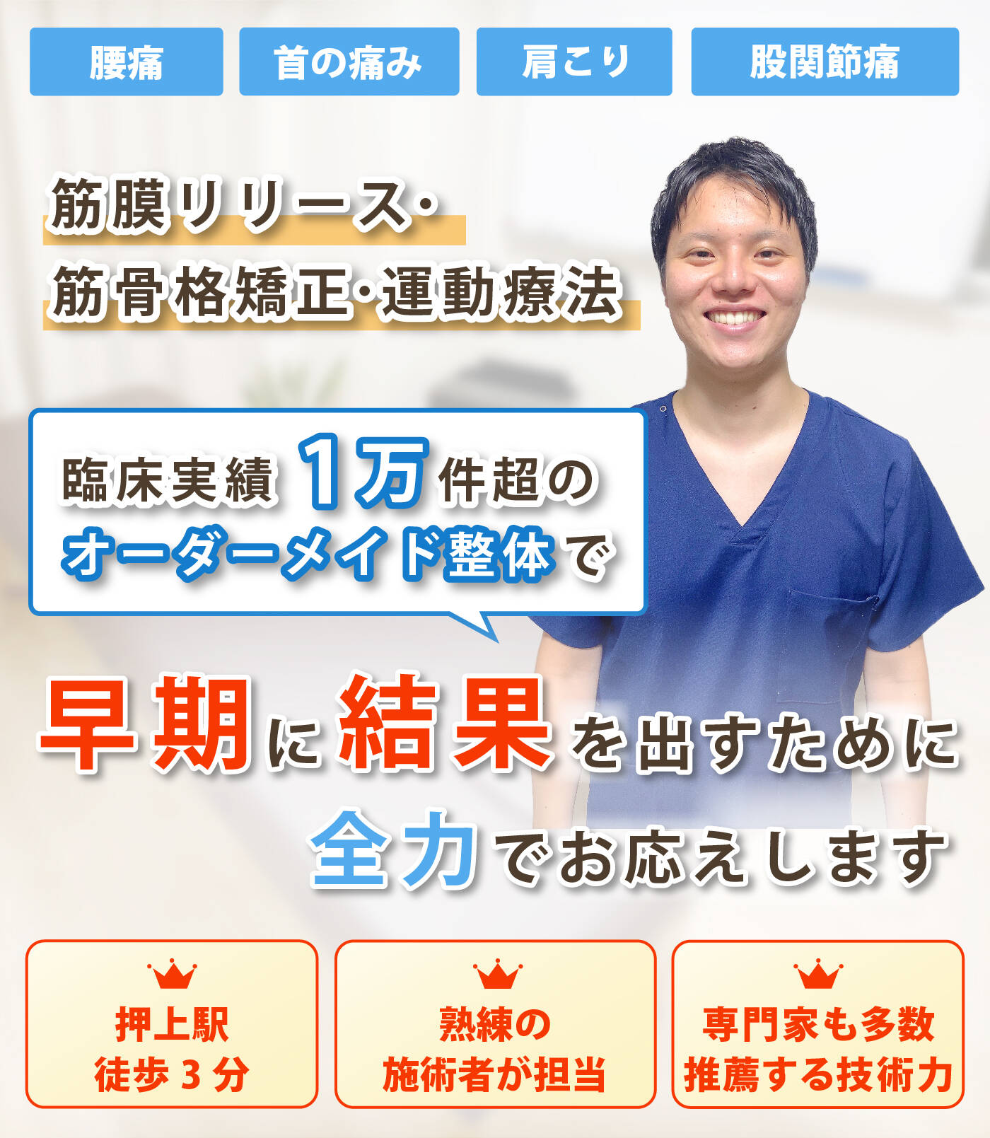 腰・肩・首の痛みコリの専門家として一人ひとりに寄り添った施術をします!